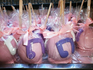 Maçãs, Pirulitos e Mini Cupcakes decorados feitos para a festa da menina Ana Carolina - Tema Barbie Pop Star.